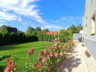 Budynek posadowiony na działce o powierzchni 1085 m2. Podczas prac remontowych wykonano mury oporowe i wypoziomowano teren, dzięki temu powstała część wykorzystywana jako ogród z altanką oraz parking. Posesja posiada dostęp do asfaltowej, oświetlonej drogi gminnej. W miejscowości znajduje się sklep, przedszkole, piekarnia, market spożywczy, stacja paliw, boisko sportowe. W odległości około 400 m przystanek komunikacji miejskiej. Spokojna okolica, jednocześnie z szybkim dostępem do centrum miasta, dróg głównych w tym drogi krajowej numer 94 i autostrady A4 wraz z przejściem granicznym Ludwigsdorf.