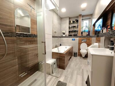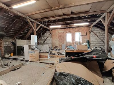 Dodatkową powierzchnię (około 215 m2) stanowi poddasze z możliwością adaptacji na cele mieszkalne.