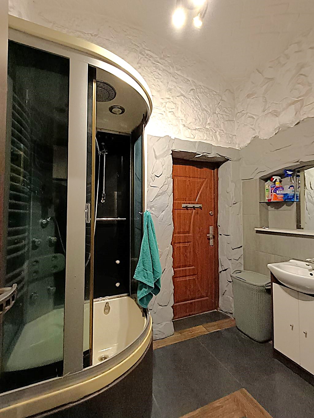 Trzecia z części parteru – pomieszczenie o powierzchni 52,03 m2 obecnie stanowi przestrzeń rekreacyjną gotową na przyjęcie kilkudziesięciu gości. Istnieje możliwość urządzenia tu dużego salonu, sali fitness lub przywrócenia tu części gospodarczej np. garażu. Ogrzewanie w tej części stanowi kominek.