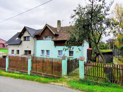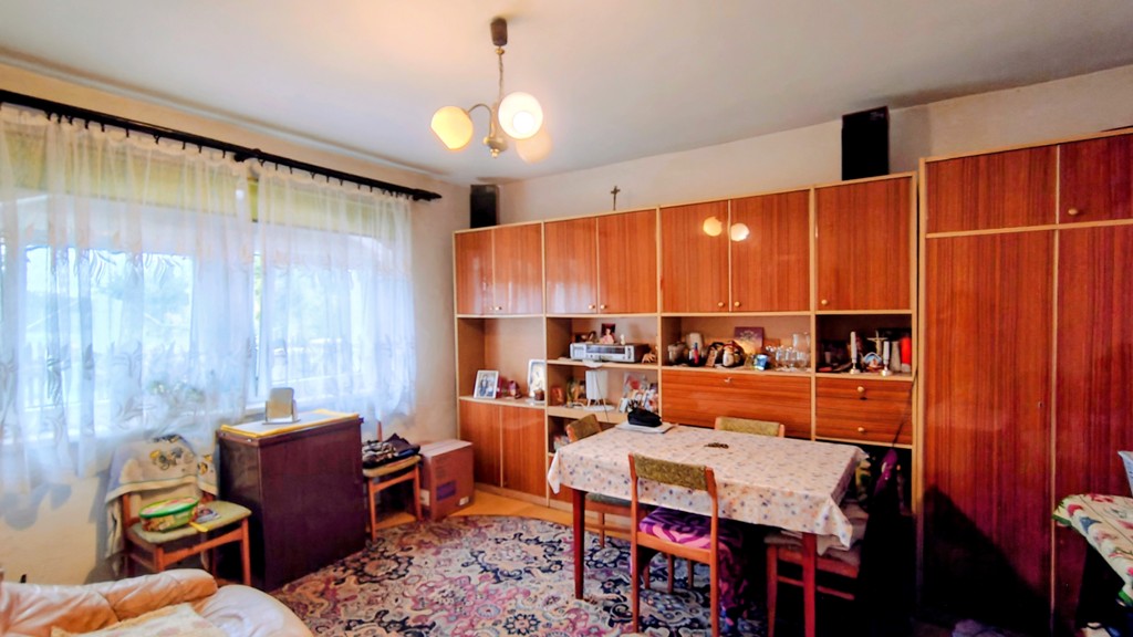 Pierwsza z działek o pow. 305 m2 zabudowana jest budynkiem mieszkalnym w zabudowie bliźniaczej oraz budynkiem gospodarczym.