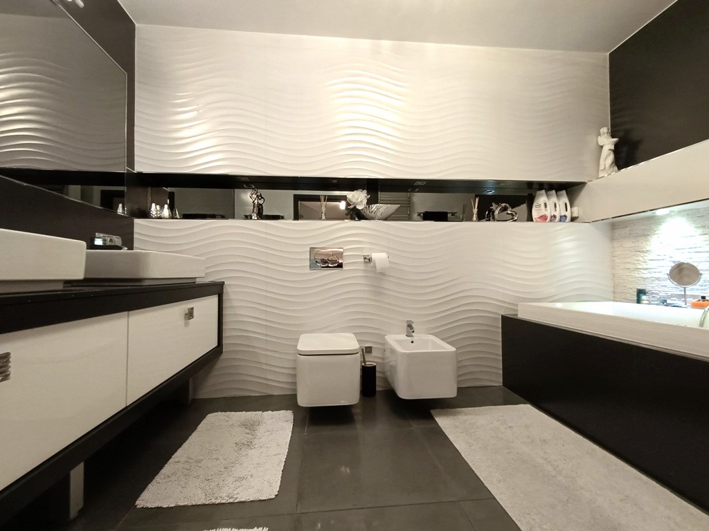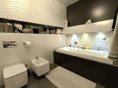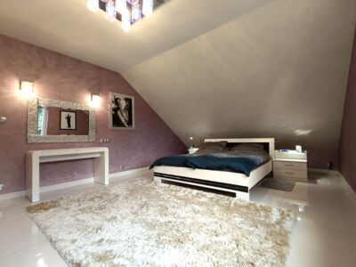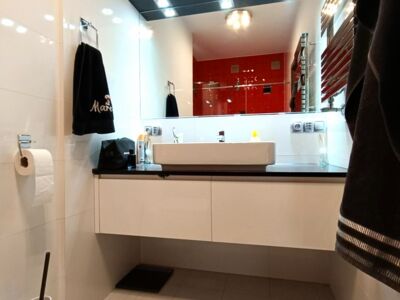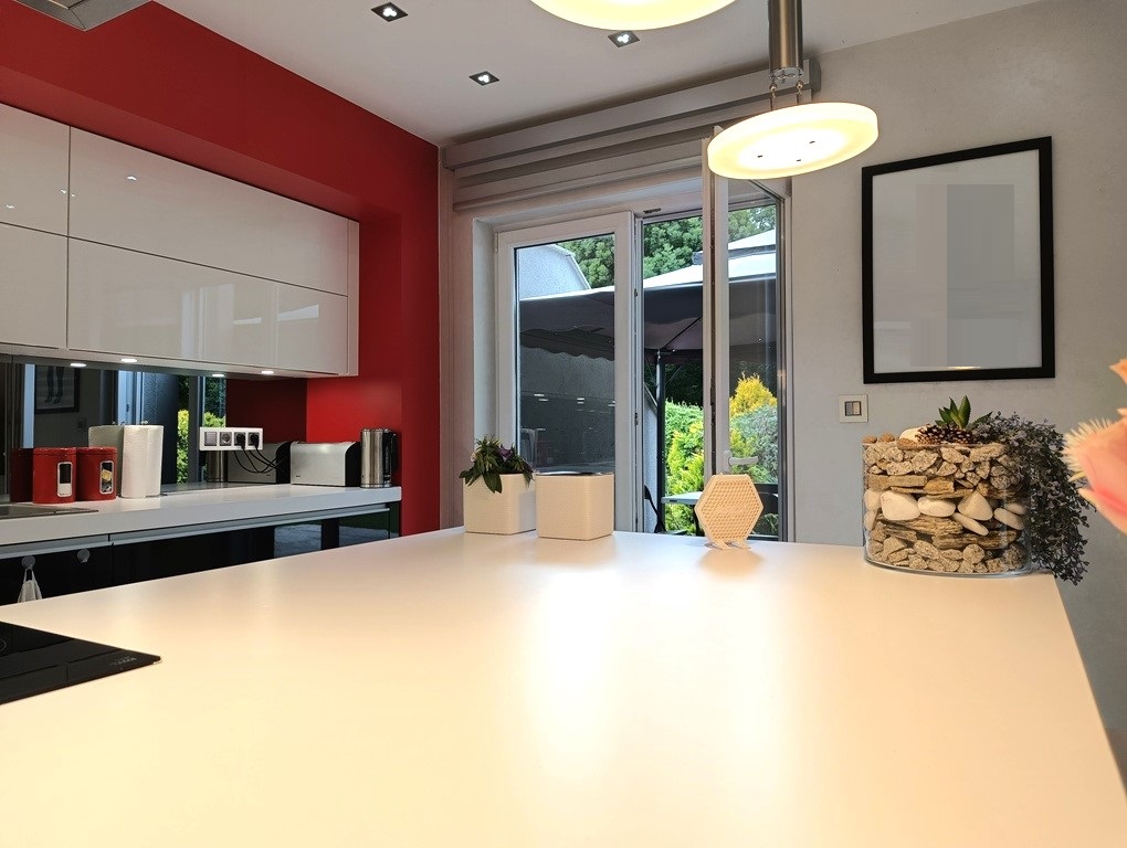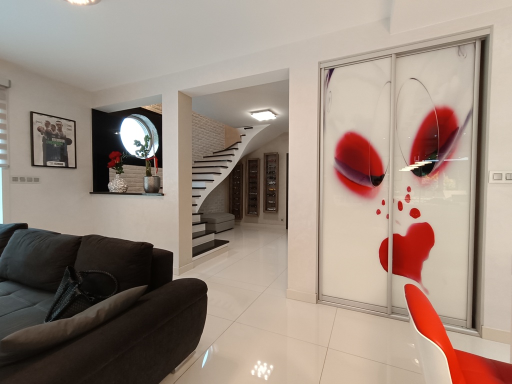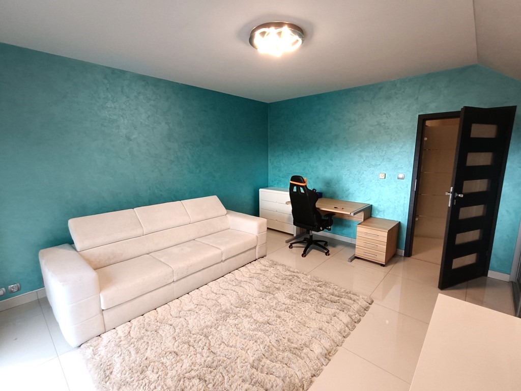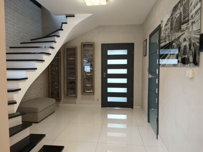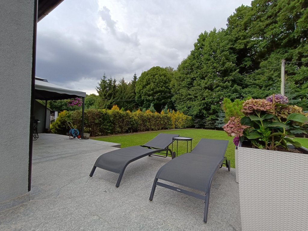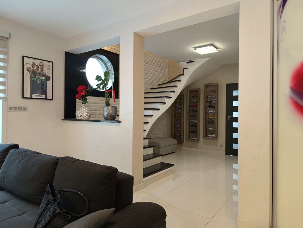 Do sprzedania nowoczesny, gotowy do zamieszkania dom zlokalizowany w odległości 7 km od centrum Zgorzelca, w Pokrzywniku. Dom w zabudowie bliźniaczej o powierzchni około 190 m2 wybudowany został pod koniec 2010 roku wg. indywidualnego projektu. Przestrzeń parteru stanowi przestronny salon o powierzchni 52 m2 z aneksem kuchennym, hol, pierwsza z łazienek wyposażona w natrysk, wiatrołap. Piętro to dwie przestronne sypialnie z garderobami oraz druga łazienka wyposażona w wannę. Dodatkowo w bryle budynku znajduje się garaż o powierzchni 24 m2 oraz pomieszczenie gospodarcze. Nowoczesne wnętrza są dobrze doświetlone przez duże przeszklenia zapraszające do środka zieleń ogrodu. Okna posiadają zewnętrzne elektryczne rolety. Na podłogach we wszystkich pomieszczeniach w domu ułożono wielkoformatowe płytki. Przemyślana kuchnia w stałej zabudowie wyposażona jest w wysokiej klasy sprzęty AGD wraz z wbudowanym ekspresem do kawy. Centralne ogrzewanie domu (w całości podłogowe) zasilane za pomocą pieca na pelet. Dom okala zadbany ogród z wypielęgnowanym trawnikiem, ozdobnymi nasadzeniami i oświetleniem. Powierzchnia działki wynosi 819 m2. Całość ogrodzona. W bezpośrednim sąsiedztwie znajdują się zabudowania jednorodzinne. Nieruchomość w wysokim standardzie, nie wymagająca wkładu. W cenie nieruchomości kupujący otrzymuje kompletne wyposażenie wraz z umeblowaniem i sprzętami.