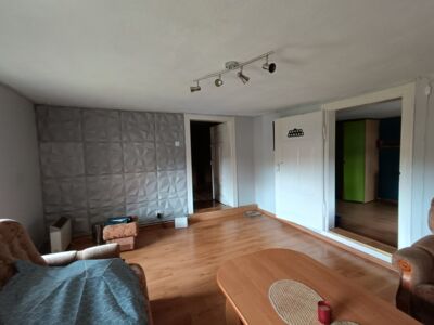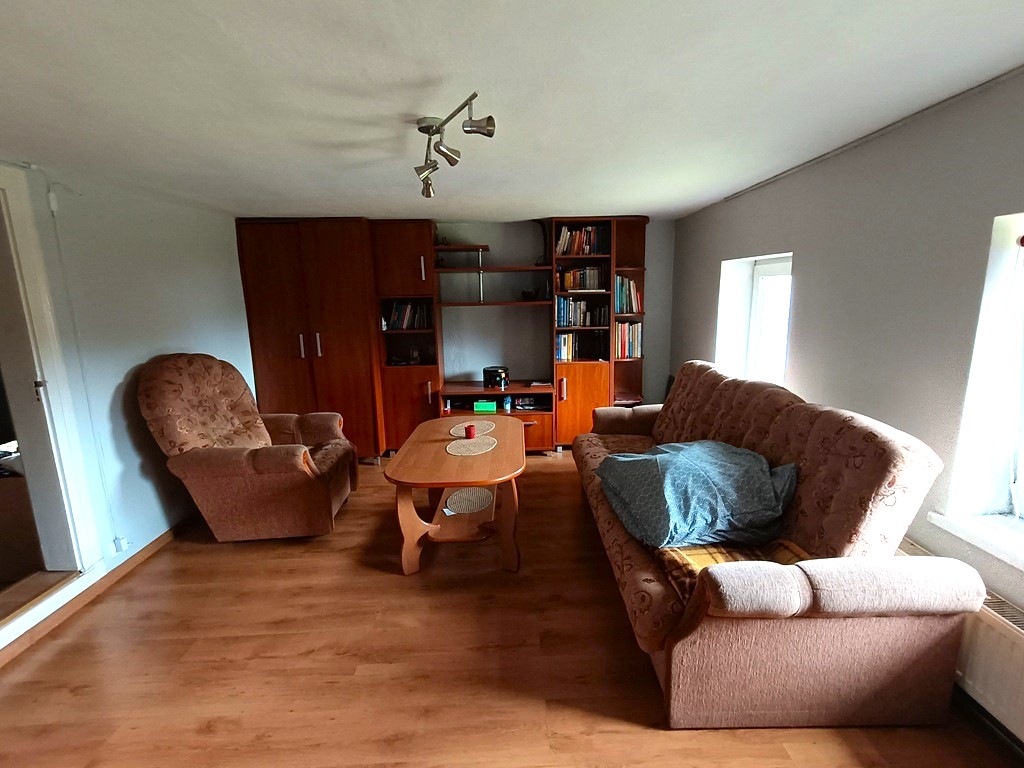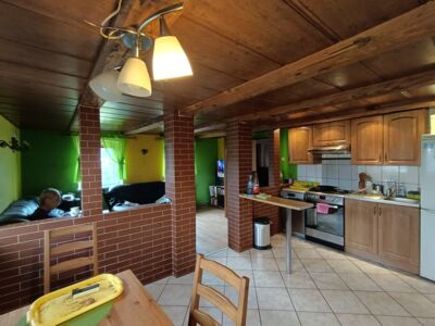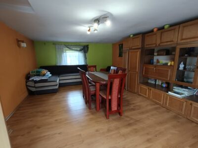 Do sprzedania nieruchomość położona na rozległej działce o powierzchni 2705 m2 we Wrociszowie Dolnym, około 1,5 km od zbiornika Niedów. Działka zabudowana jest budynkiem mieszkalnym posadowionym w głębi działki oraz budynkiem gospodarczym. Powierzchnia budynku mieszkalnego wynosi 88 m2 i obejmuje: na parterze: pokój dzienny z dużym aneksem kuchennym, pierwszą z sypialni, hol z pomieszczeniem gospodarczym na pralnię oraz łazienkę. Piętro to hol oraz trzy sypialnie. Dodatkowo w bryle budynku na parterze znajduje się duże pomieszczenie gospodarcze z wejściem z zewnątrz. Budynek podpiwniczony. Powierzchnie zostały wyliczone z uwzględnieniem redukcji z uwagi na wysokość niektórych pomieszczeń poniżej 2,20 m. Powierzchnia zabudowy budynku gospodarczego wynosi około 140 m2. Budynek służy za dwustanowiskowy garaż z warsztatem. Centralne ogrzewanie zasilane za pomocą pieca na paliwo stałe, stolarka okienna wymieniona na PCV, instalacja kanalizacyjna z odprowadzeniem do szamba, woda z wodociągu, dodatkowo na posesji studnia. Posesja położona jest bezpośrednio przy asfaltowej, oświetlonej drodze. Frontowe ogrodzenie z metaloplastyki na podmurówce. Nieruchomość doskonale nadaje się na prowadzenie działalności usługowej lub handlowej w miejscu zamieszkania. Istnieje możliwość zakupu sąsiedniej działki rolnej, niezabudowanej o powierzchni 6281 m2 za 69 000 zł.