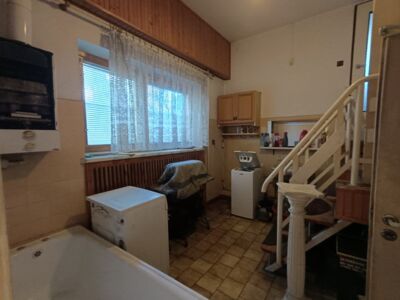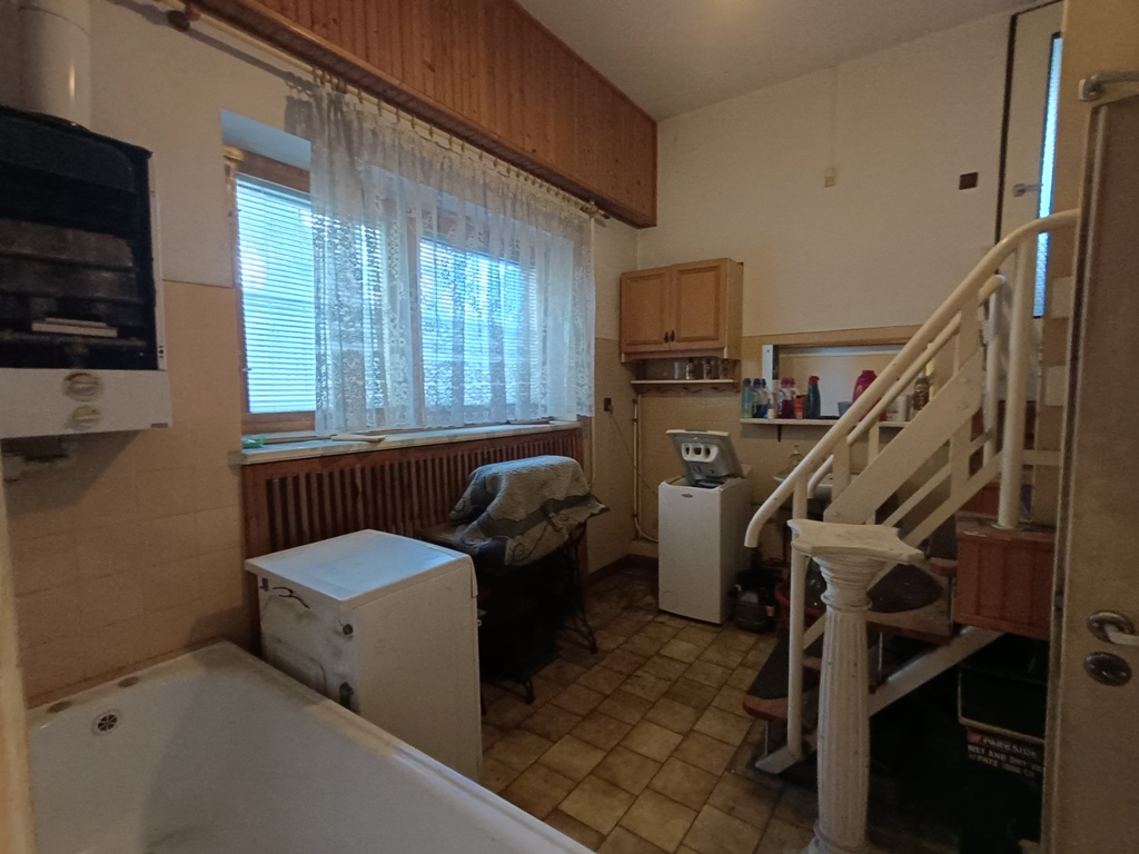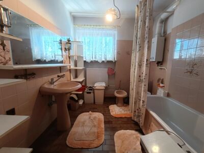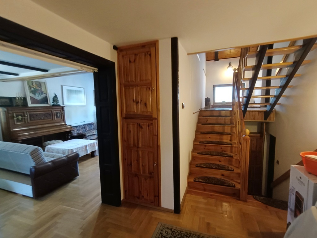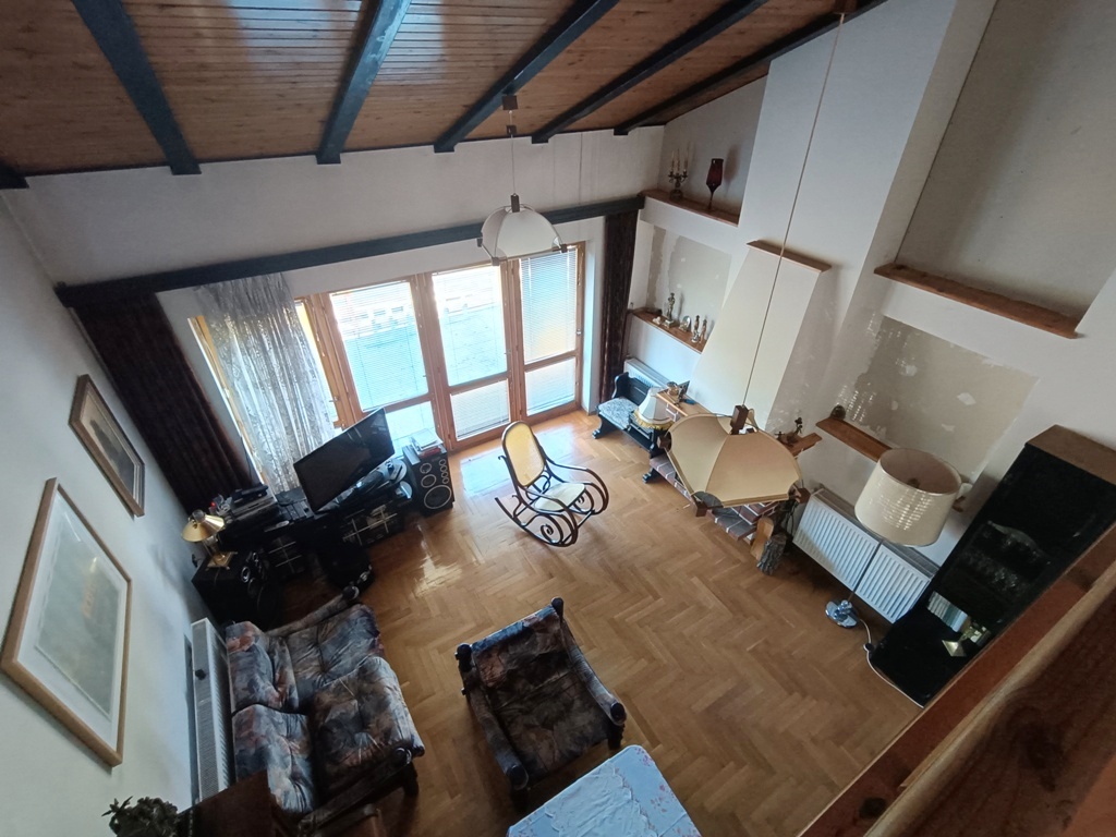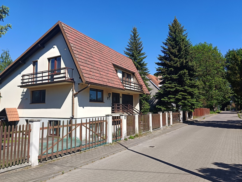 Do sprzedania wolnostojący dom z końca lat 80tych. Budynek 3 kondygnacyjny zlokalizowany w południowej części miasta przy ulicy o niewielkim natężeniu ruchu. Powierzchnia budynku wynosi około 150 m2. Na wysokim parterze znajduje się hol z komunikacją, wiatrołap, kuchnia, WC, przestronny wysoki salon z wyjściem na taras. Poddasze to 3 sypialnie, garderoba, łazienka. Dwie z sypialni posiadają wyjście na balkony. W przyziemiu znajduje się duży, wysoki garaż z kanałem, pomieszczenia gospodarcze w tym pralnia oraz sauna z łazienką. Przestrzeń przyziemia stanowi także osobne 2 pokojowe mieszkanie z garażem które wynajmowane może stanowić źródło dodatkowego dochodu. Centralne ogrzewanie domu zasilane za pomocą pieca z podajnikiem na ekogroszek. Stolarka okienna drewniana. Dom posadowiony na działce o powierzchni 884 m2. Całość ogrodzona z dwoma bramami wjazdowymi i furtkami. Na posesji znajduje się altanka, nasadzenia drzew i krzewów ozdobnych i owocowych. Spokojna, bezpieczna okolica i przyjazne sąsiedztwo. W bliskiej odległości szkoła podstawowa, market spożywczy, przedszkole i przystanek komunikacji miejskiej.