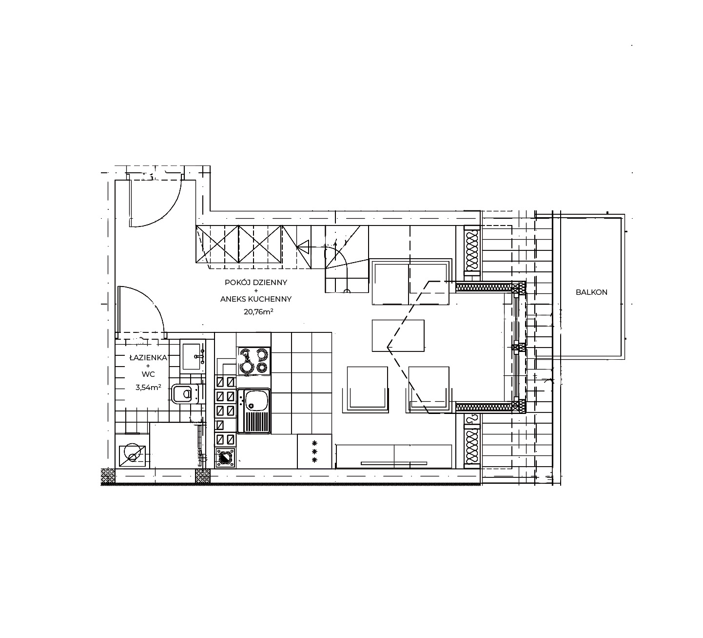 Pokój z Aneksem kuchennym 20,76 m²
