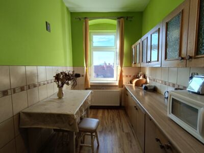 Do sprzedania wyjątkowe mieszkanie zlokalizowane w samym centrum Zgorzelca przy ulicy Warszawskiej. Lokal położony jest na III piętrze pięknej, odrestaurowanej kamienicy. Powierzchnia mieszkania wynosi 95 m2 i obejmuje pokój dzienny dwie sypialnie, łazienkę wyposażoną w wannę, osobne WC, kuchnię ze spiżarnią, oraz przedpokój. Jedna z sypialni posiada wyjście na słoneczny balkon z widokiem na zachód. Do mieszkania przynależy piwnica. Właściciele korzystają także z pomieszczenia gospodarczego na piętrze. Stolarka okienna wymieniona na PCV. Centralne ogrzewanie zasilane przez dwufunkcyjny piec gazowy wraz z nową instalacją z grzejnikami. Miesięczne stałe koszty (zarządu i funduszu remontowego) wynoszą około 260 zł. Dogodna lokalizacja – w otoczeniu liczne punkty usługowo-handlowe, w pobliżu przedszkole, szkoła, park oraz przejście graniczne. Dostępne miejsca parkingowe w podwórku na tyłach budynku.