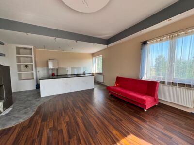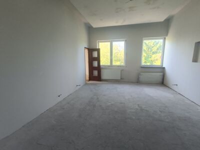 Nieruchomość położona jest w Działoszynie w otoczeniu zieleni lasu, łąk i pól a jednocześnie 10 minut od centrum Bogatyni. Mieszkanie o powierzchni 122,62 m2 położone jest na wygodnym I piętrze kilku rodzinnego budynku dawnej strażnicy WOP. W skład pomieszczeń wchodzi przestronny salon z aneksem kuchennym z dużą wyspą. W salonie zainstalowano kominek z płaszczem wodnym stanowiąc źródło centralnego ogrzewania lokalu. Dodatkowo w lokalu znajdują się dwie sypialnie z których jedną podzielono na dwa mniejsze pomieszczenia ścianką lekkiej konstrukcji możliwą do demontażu. Lokal posiada łazienkę z oknem wyposażoną w dużą narożną wannę oraz przestronny hol. Do mieszkania przynależy duża piwnica.