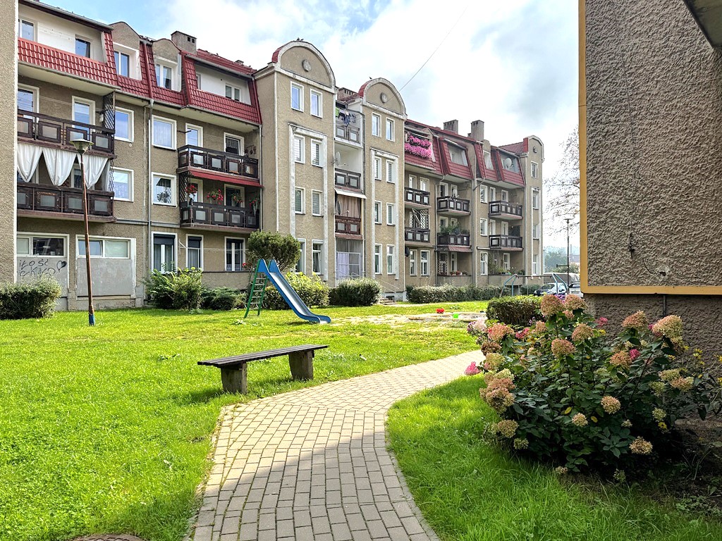 Do sprzedania 3-pokojowe mieszkanie położone w centrum Zawidowa przy ul. Norwida o wyjątkowym, dwupoziomowym układzie z dużym potencjałem aranżacyjnym. Powierzchnia mieszkania wynosi 65,80 m2 i rozdzielona jest na strefy dzienną i prywatną. Na pierwszym poziomie znajdują się: przestronny pokój dzienny z wyjściem na balkon, kuchnia, wc, przedpokój oraz niewielka garderoba. Drugi poziom (niższy) składa się z: 2 pokoi, łazienki wyposażonej w wannę oraz przedpokoju. Mieszkanie słoneczne z południową wystawą okien salonu i kuchni. Dzięki przemyślanemu wykorzystaniu powierzchni każdy metr kwadratowy pełni określoną funkcję - np. mała garderoba w przedpokoju, wnęki na zabudowy meblowe. Do mieszkania przynależy piwnica o powierzchni 5,40 m2. Dodatkowo do współkorzystania z pozostałymi mieszkańcami jest pomieszczenie gospodarcze na półpiętrze. Mieszkanie położone jest na niskim, wygodnym II piętrze budynku wielorodzinnego zarządzanego przez spółdzielnię mieszkaniową. Miesięczne koszty wraz funduszem remontowym i zaliczką na C.O. wynoszą około 670 zł. W najbliższej okolicy znajdują się: sklepy, szkoła, restauracje, a także park - dzięki temu wszystkie udogodnienia codziennego życia są w zasięgu krótkiego spaceru.
