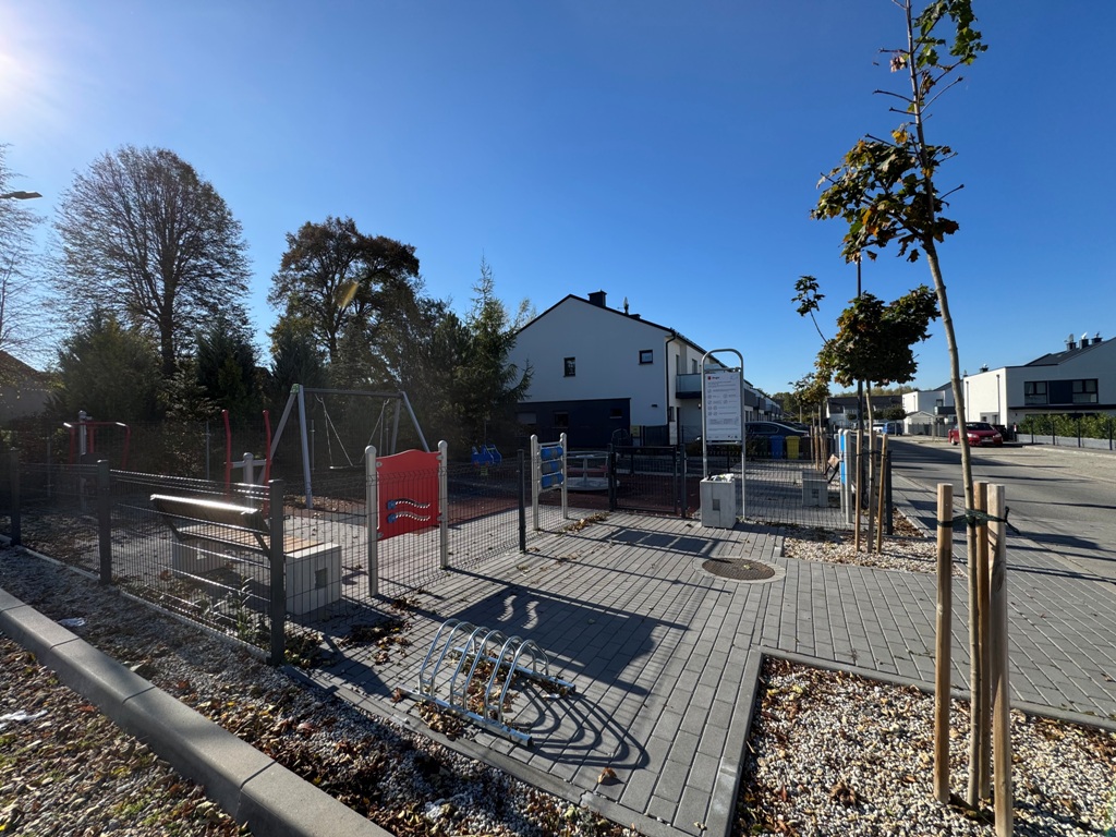 Na terenie inwestycji zaprojektowano również plac zabaw wykonany z bezpiecznych, certyfikowanych materiałów, stanowiący przestrzeń rekreacyjną dla najmłodszych mieszkańców.