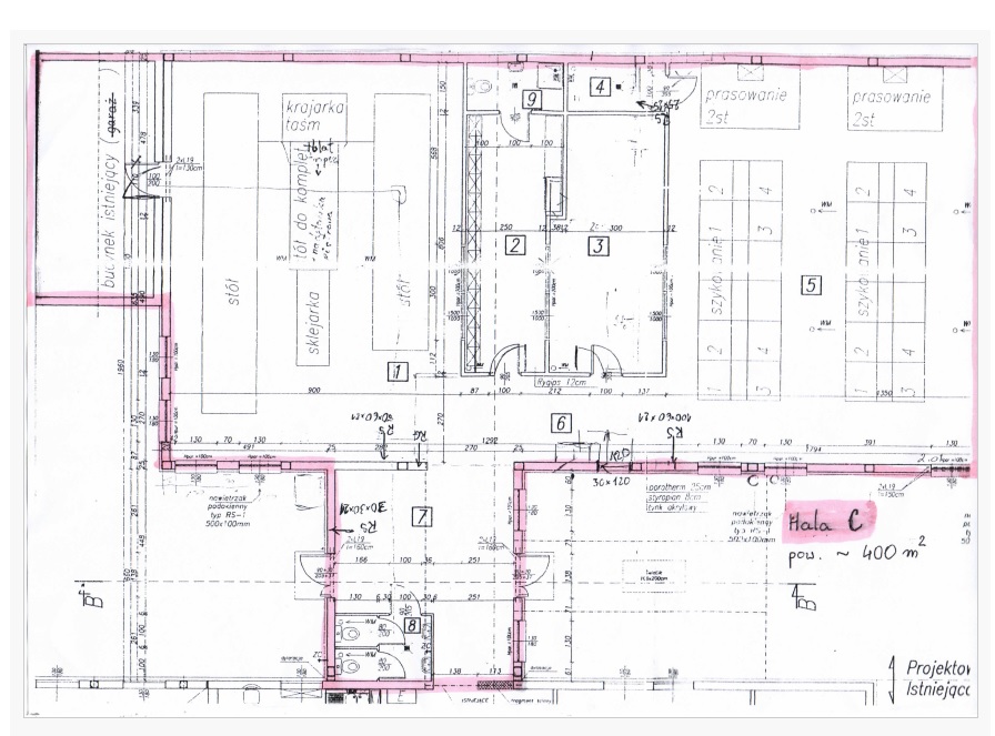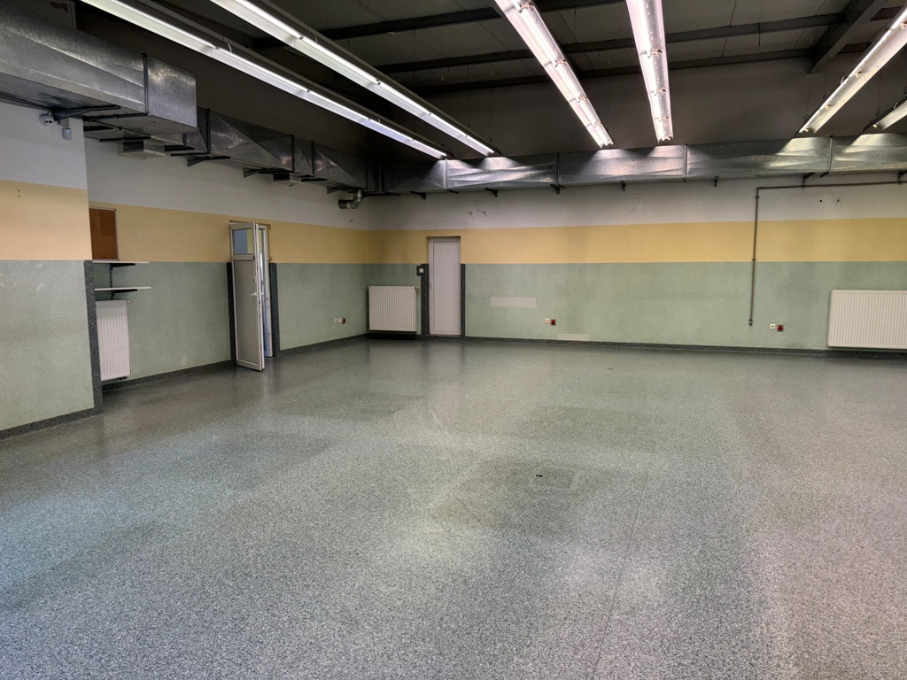 - wszystkie podłogi wykończono wykładziną przemysłową PVC Tarket